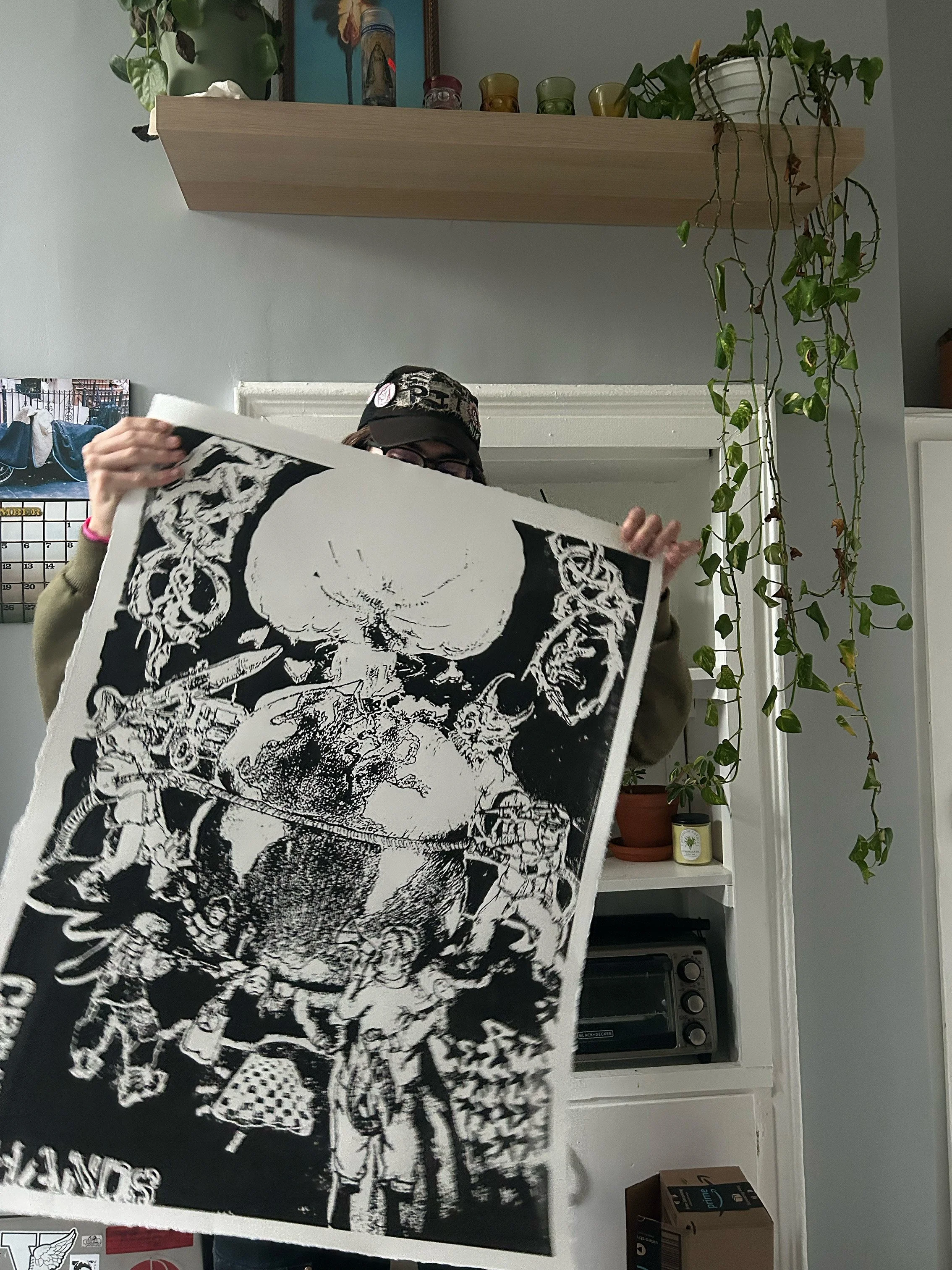 My screen printing experience began during the COVID lockdown in 2020. I continued screen printing out of apartments upon returning to New York, and grew my skillset in the print lab at Parsons. I’ve been fortunate enough to help friends and local bands print patches and merchandise from my home and from university facilities. Below are process photos and some of my favorite projects and experiments.